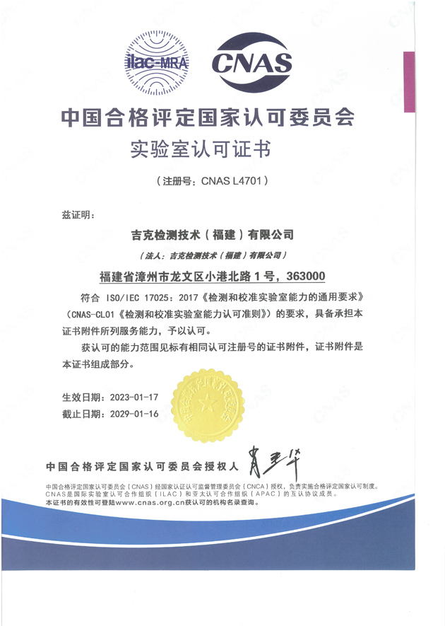 吉克檢測技術(shù)(福建)有限公司,位于福建省漳州市龍文區(qū)小港北路1號,于2019年8月注冊成立,是一家獨立的第三方檢測公司。公司已經(jīng)通過檢驗檢測機構(gòu)計量認證(CMA)、農(nóng)產(chǎn)品質(zhì)量安全檢測機構(gòu)資質(zhì)認證(CATL),獲得中國合格評定國家認可委員會(CNAS)認可。公司本著“嚴謹、規(guī)范、高效、協(xié)作”的原則和對客戶及社會高度負責的精神,充分利用本公司優(yōu)質(zhì)的檢測環(huán)境、先進的檢測設(shè)備和專業(yè)的技術(shù)人員,第一時間為客戶提供科學、公正、準確的檢驗檢測報告。       公司實驗室面積1100多平方米,儀器設(shè)備兩百多臺(套),固定資產(chǎn)一千多萬元,在職員工31人,技術(shù)人員中的中高級職稱及同等能力人數(shù)占60%以上。我們的服...